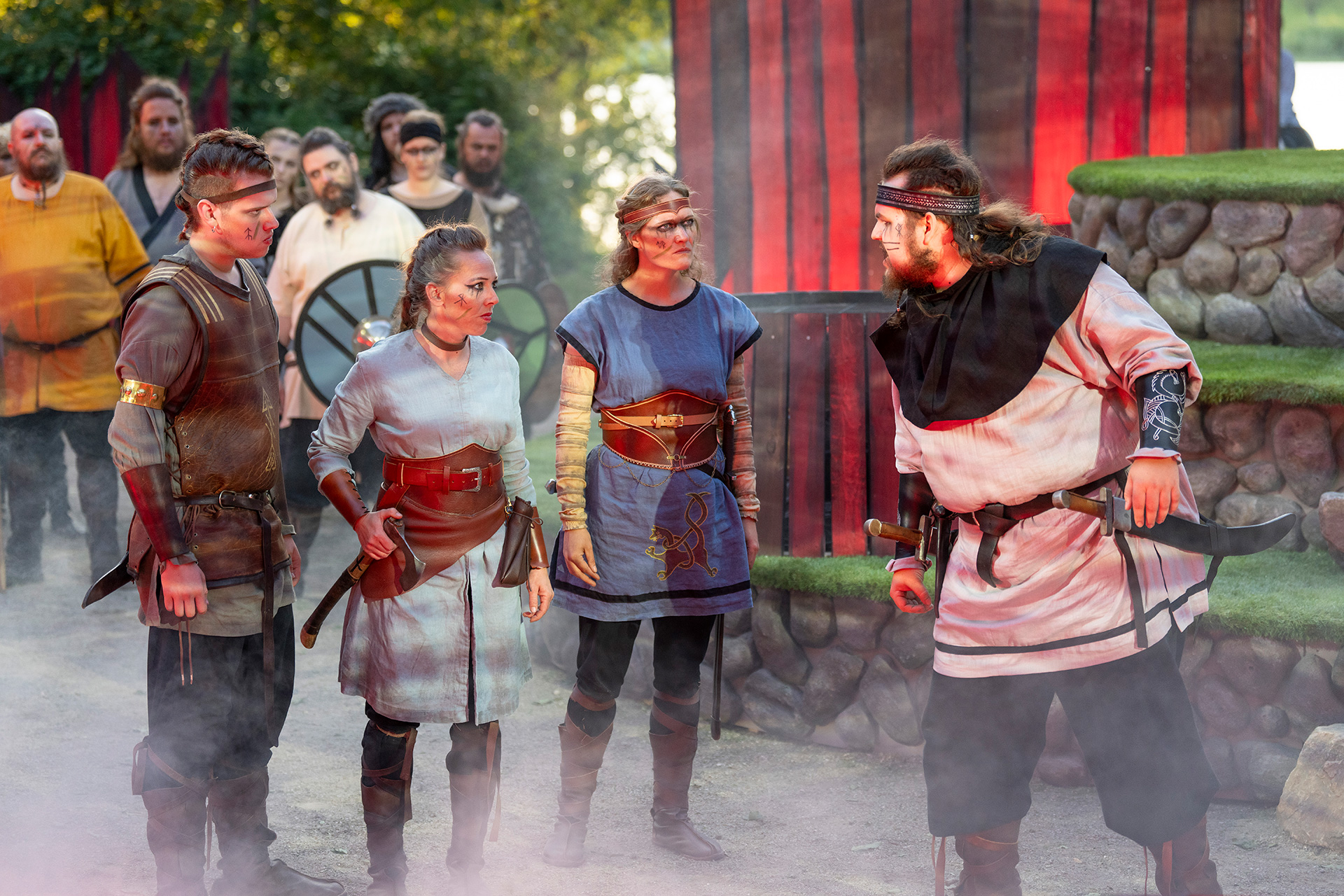 Vikingespillet i Jels gennemføres af mere end 500 frivillige, som hjælper til både foran og bagved scenen. Scene-område med siddepladser er ny-renoveret i 2026.